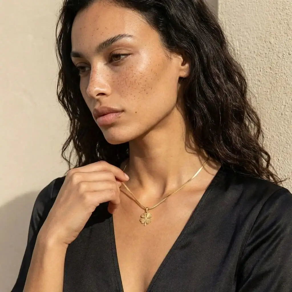 Encantador y sin esfuerzo, el collar con colgante Elara Trébol de la Suerte aporta un acabado pulido con un toque sutil de significado. Su colgante de trébol le da a la pieza una sensación atemporal y femenina que funciona perfectamente para el uso diario, pero que también se siente especial para celebraciones y regalos. Elegante, fácil de combinar y versátil, es el tipo de collar que completa un look al instante.