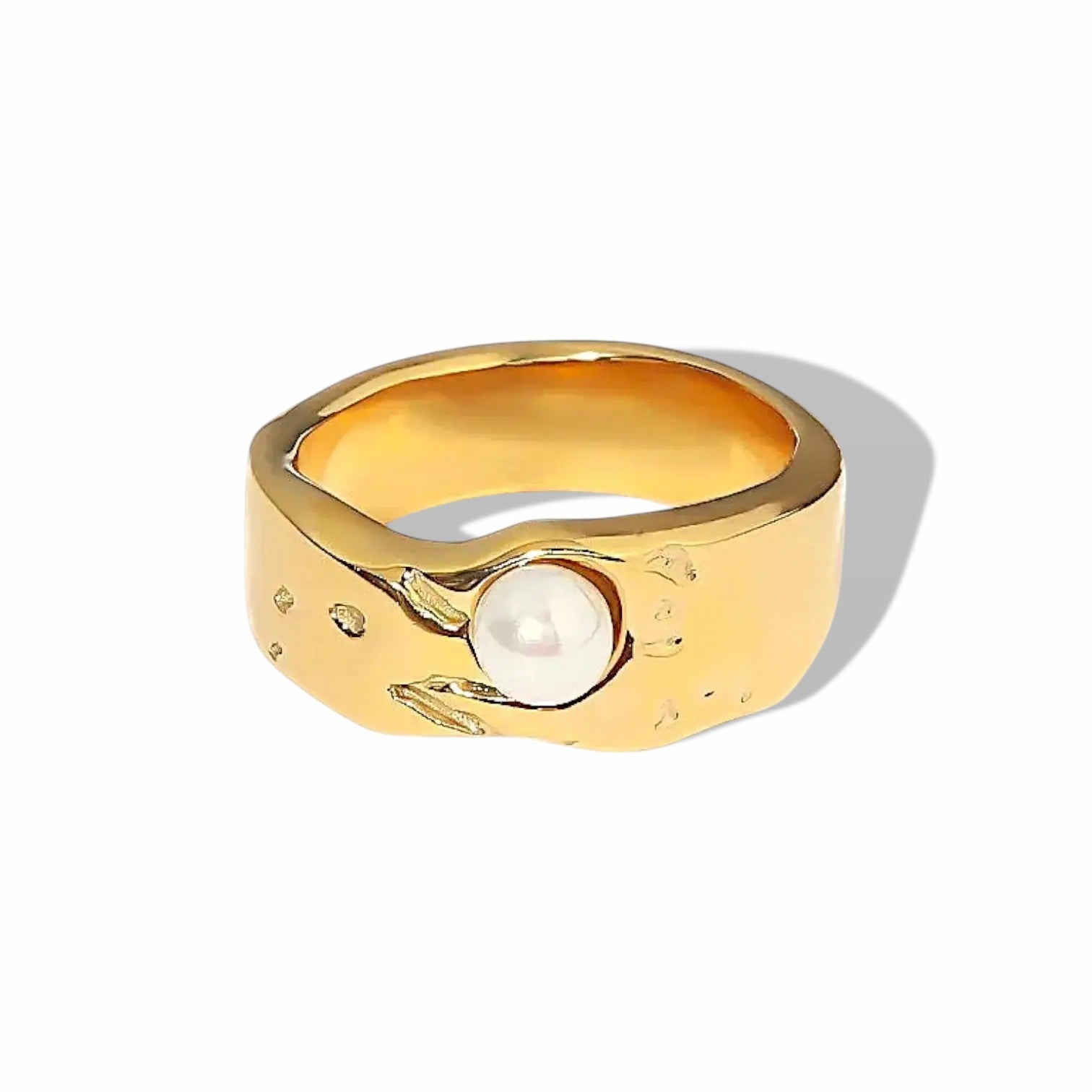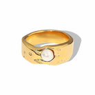 El anillo de perla de agua dulce Auralis combina la belleza suave y el estilo moderno. La perla redonda brillante y la banda abstracta de oro crean un aspecto que se siente elegante, pulido y fácil de llevar. Es una pieza hermosa para atuendos diarios, cenas y momentos especiales.