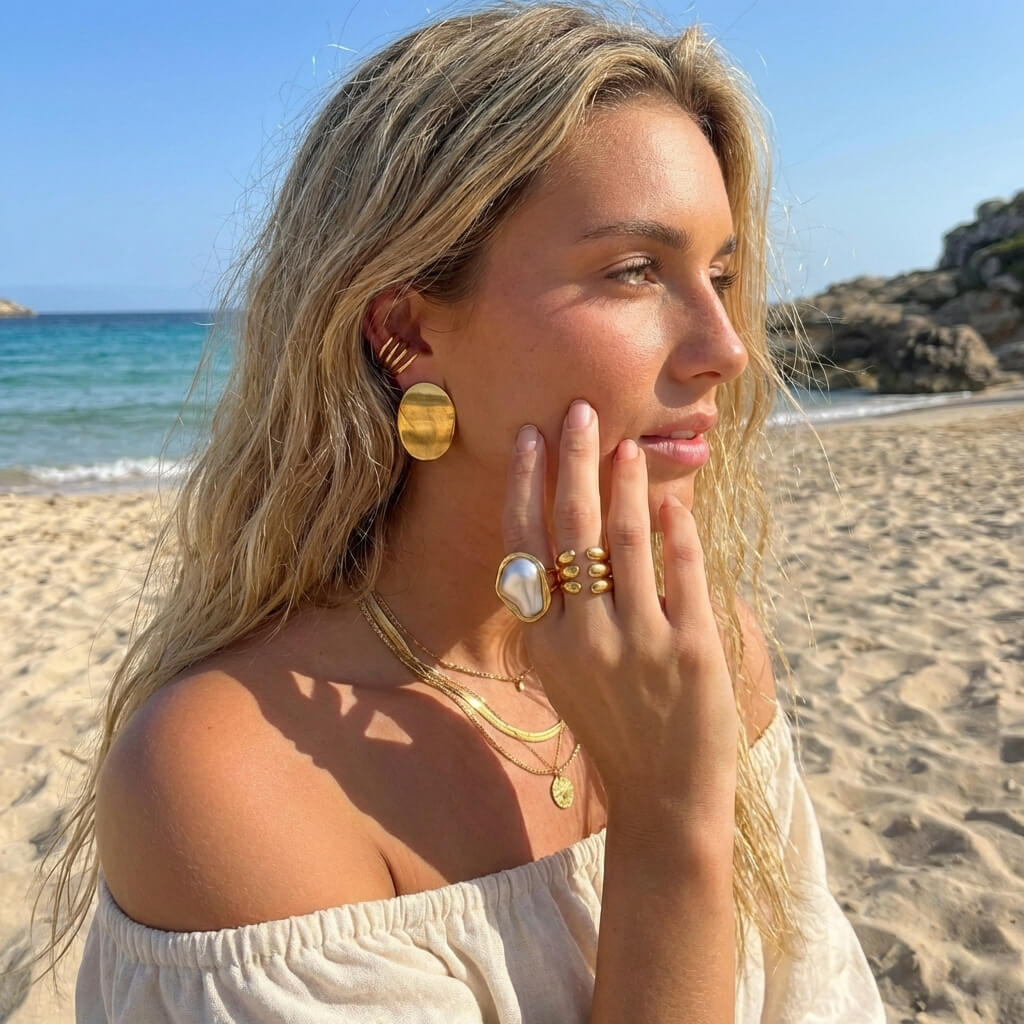 El anillo de perla dorada Aureva es audaz, pulido y lleno de carácter. Su forma esculpida y la perla natural lo hacen sentir especial, moderno y fácil de notar. Es una pieza hermosa para el uso diario o cualquier look que necesite un poco más de estilo.